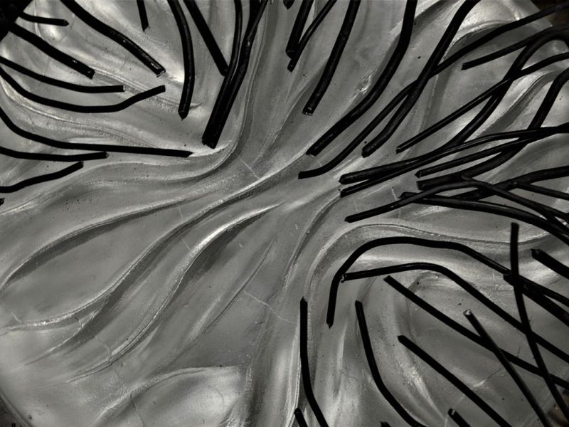 Sol is part of the series, Captured. It is a cast glass object combined with metal, using the materials to work and breathe together in the composition. The smoothness of the glass is being in contrast with its metal frame, yet the represented waves are in a sort of delusive harmony.